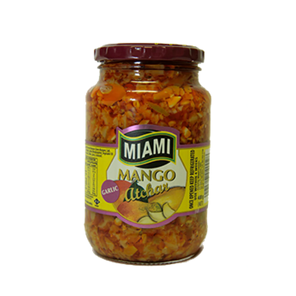 Crunchy pieces of preserved green mangoes, mixed with curry powder, chillies and salt, pickled in sunflower oil. A great accompaniment to Indian inspired dishes, with cold meat on a sandwich or simply as a condiment with any meat dish.